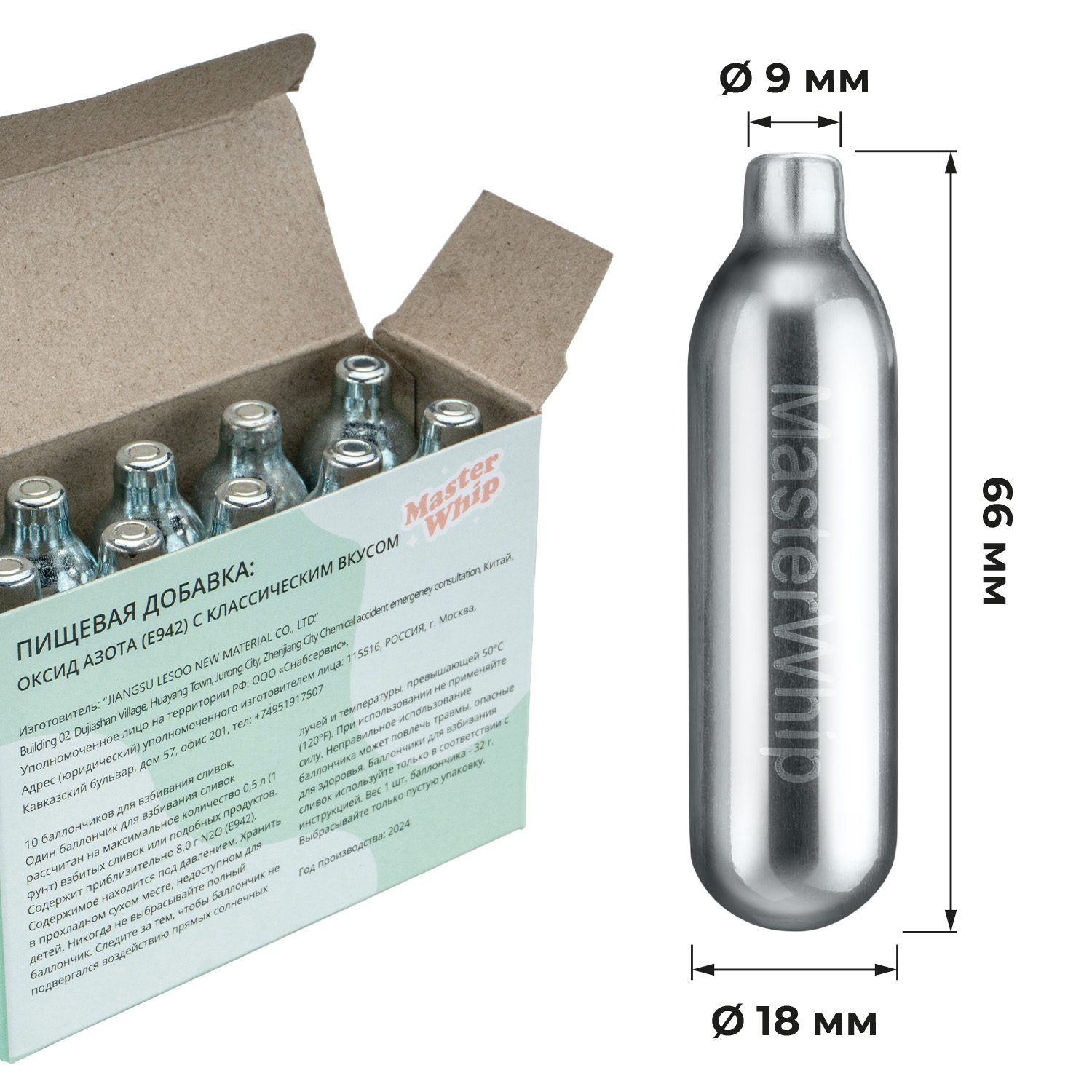 Баллончики для сифона для взбивания сливок (N2O) 10 шт/уп. вкус мята MasterWhip /1/36/