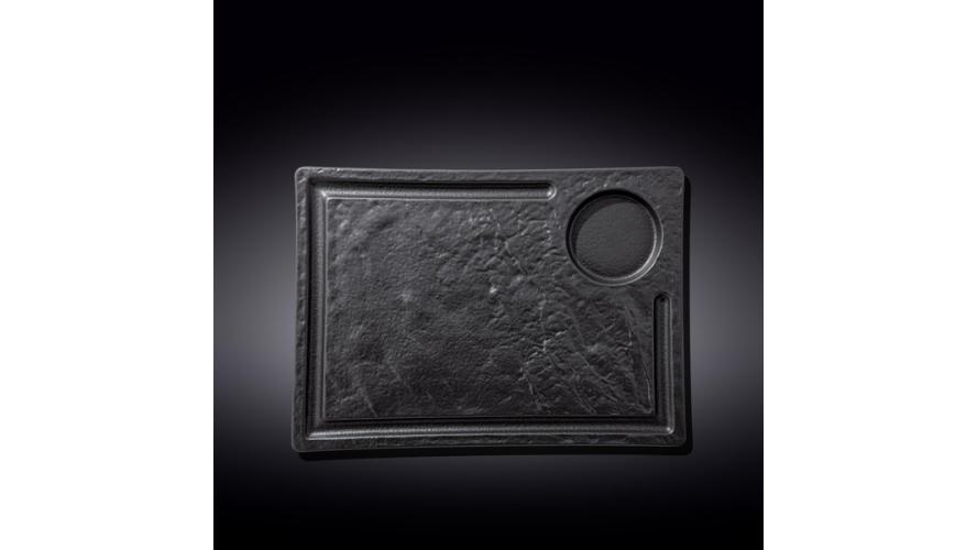 Блюдо для подачи 325*230 мм. с выемкой для соусника d=80 мм. Слэйт Wilmax /2/12/