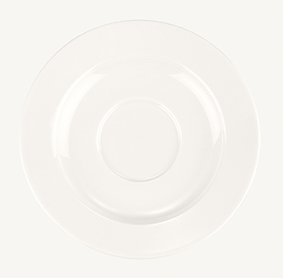 Блюдце белого цвета со сливочным оттенком.