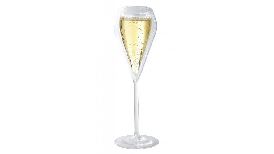 Элегантные прозрачные бокалы для шампанского с двойными стенками , которые сохраняют жидкость холодной в течение длительного периода времени, а внешнее стекло остается безопасным на ощупь.