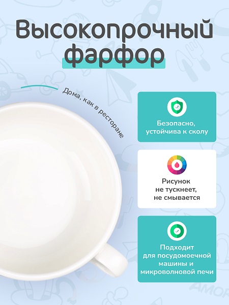 Коллекция "KIDS" выполнена из профессионального твердого фарфора теплого сливочного оттенка с детским декором.