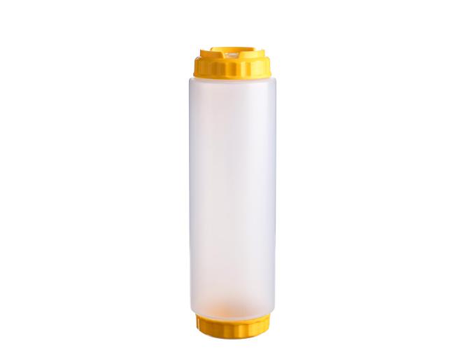 Емкость для соуса 1000 мл. d=75 мм. h=257 мм. c 2 крышками, с силик. носик. широкая прозрачная, крышки желтые GP /1/96/ ВДОХНОВЕНИЕ