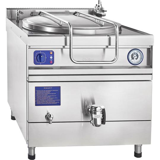 Объем котла составляет 200 литров. Три режима работы. Слив готового продукта осуществляется краном большого диаметра на лицевой панели. Удобная ручка крышки котла фиксируется в любом положении. Нагрев воды осуществляется способом "пароводяной рубашки". При отсутствии воды в "пароводяной рубашке" срабатывает автоматическое отключение нагрева. Регулируемые по высоте ножки.