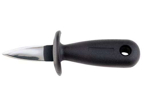 Рукоять ножа с защитой пальцев выполнена из ударопрочного пластика с нескользящей поверхностью и широкой задней частью, что позволяет крепко и безопасно держать нож при открывании моллюска.