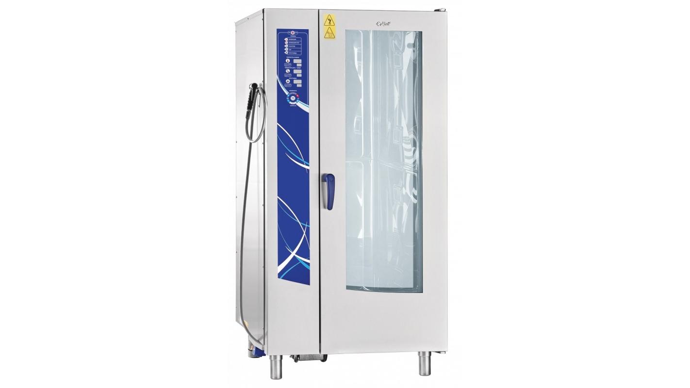 Пароконвектомат Abat ПКА 20-1/1 ПМ2 (автоматическая мойка) бойлерного типа, предназначен для приготовления различных блюд методом обработки паром и горячим воздухом: обжаривания, приготовления на пару, бланширования, запекания и других видов тепловой обработки продуктов на предприятиях общественного питания и торговли.