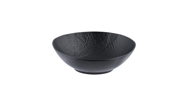 Салатник насыщенного черного цвета со стилизацией поверхности под рисунок листьев лотоса.