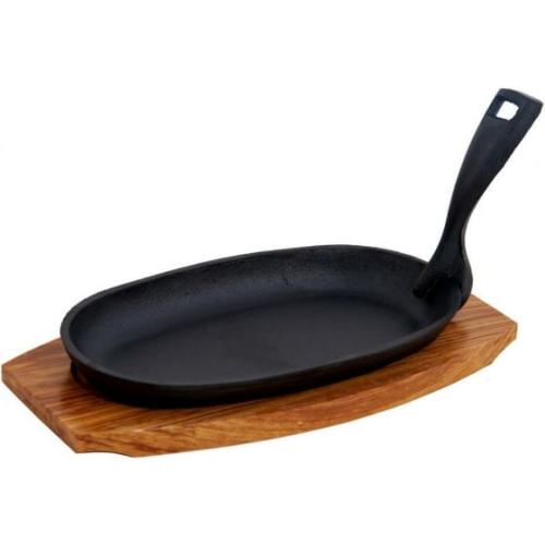 Сковорода 22,5*12,5 см. h=4 см. 0,42 л. чугун. съемная ручка на дерев. подставке /1/12/
