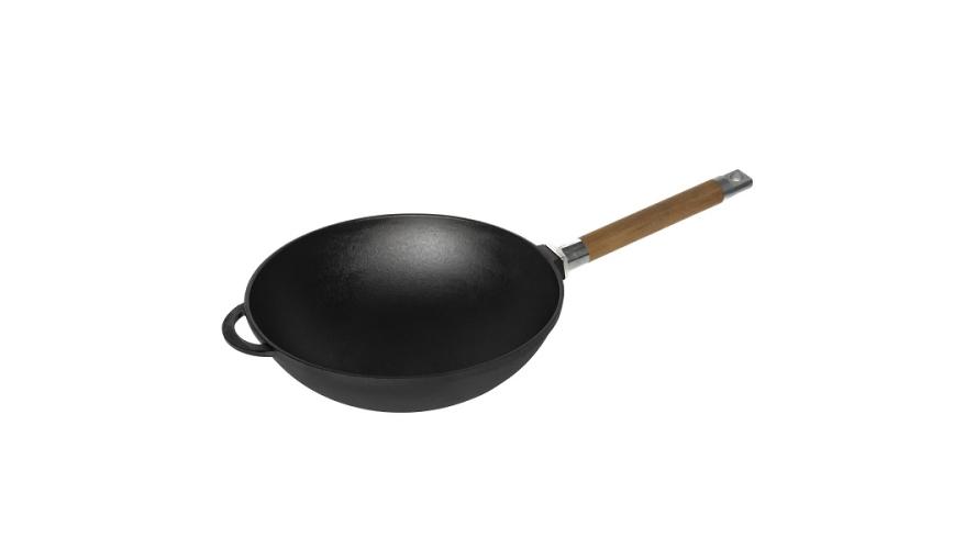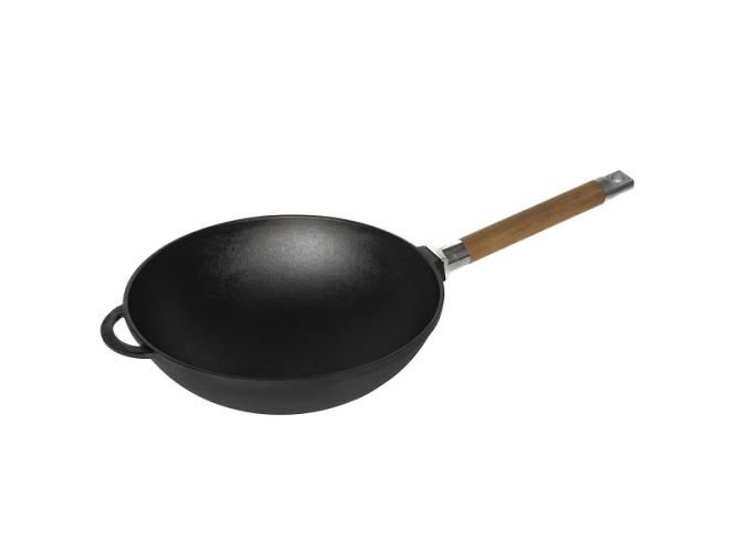 Сковорода Wok d=24 см. h=8,2 см. 2,15 л. чугун со съем дерев. ручкой/1/6/