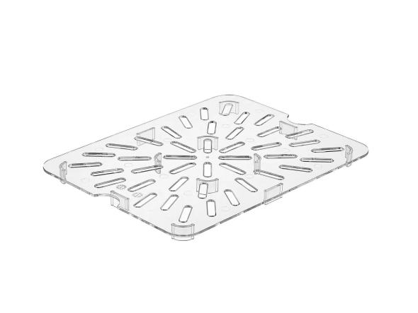 Дренажная вставка GN 1/2 (258*198 мм) из прозрачного поликарбоната обладает ударопрочностью. Устойчива к температурам от -40 до +100°c. Вырезы по бокам обеспечивают удобство в установке и извлечении. Подходит для мытья в посудомоечной машине.