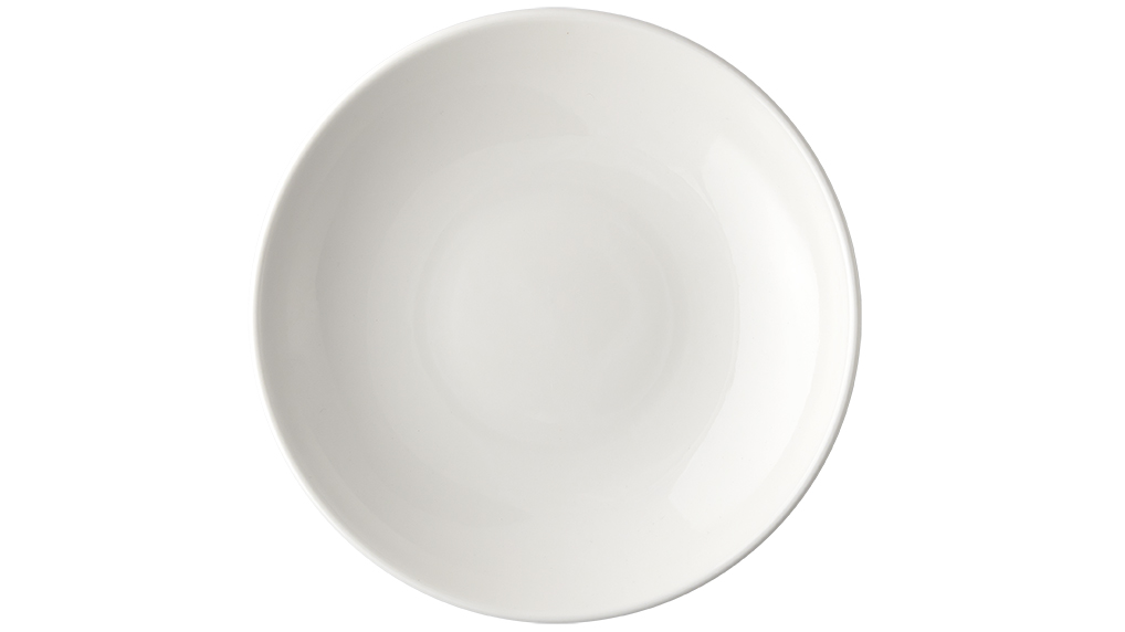 Тарелка белого цвета со сливочным оттенком.
